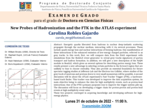 Están cordialmente invitados a la presentación de su defensa final del Sra. CAROLINA ROBLES GAJARDO. La comisión de tesis está conformada por: Dr. William Brooks (USM), Director de Tesis Dr. Raphael Dupré, (IJCLab France) Evaluador Externo Dr. Hayk Hakobyan (USM), Evaluador Interno Dr. Boris Kopeliovich (USM), Evaluador Interno Lunes 31 de Octubre de 2022 […]