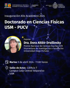 Nos complace invitarles a la solemne apertura del año académico del Doctorado en Ciencias Físicas, una colaboración entre la Universidad Técnica Federico Santa María y la Pontificia Universidad Católica de Valparaíso. Este evento contará con la presencia de la destacada Dra. Dora Altbir Drullinsky, ganadora del Premio Nacional de Ciencias Exactas 2019 y Vicerrectora de […]